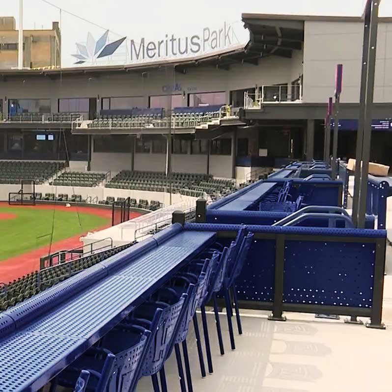 To insure your install runs smoothly, we now offer turnkey installation for drink rail and guard rail. Your products will be quickly installed by a team led by the same expert who designed your stadium's layout of furnishings and also created each part of the build.