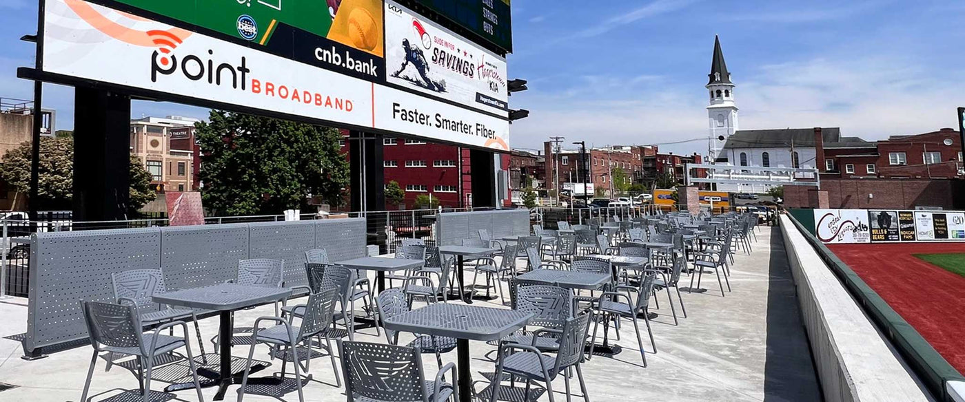 Our catalog of drink rail and guard rail products along with stadium ready tables, benches, chairs, and receptacles are all here for your review.