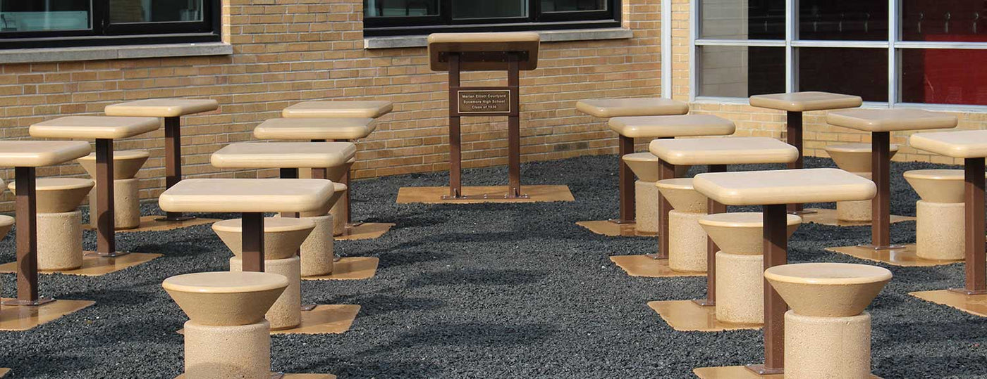 Each of these with a minimum of 15 different finishes to match any design scheme for parks, businesses, rest areas, and schools.