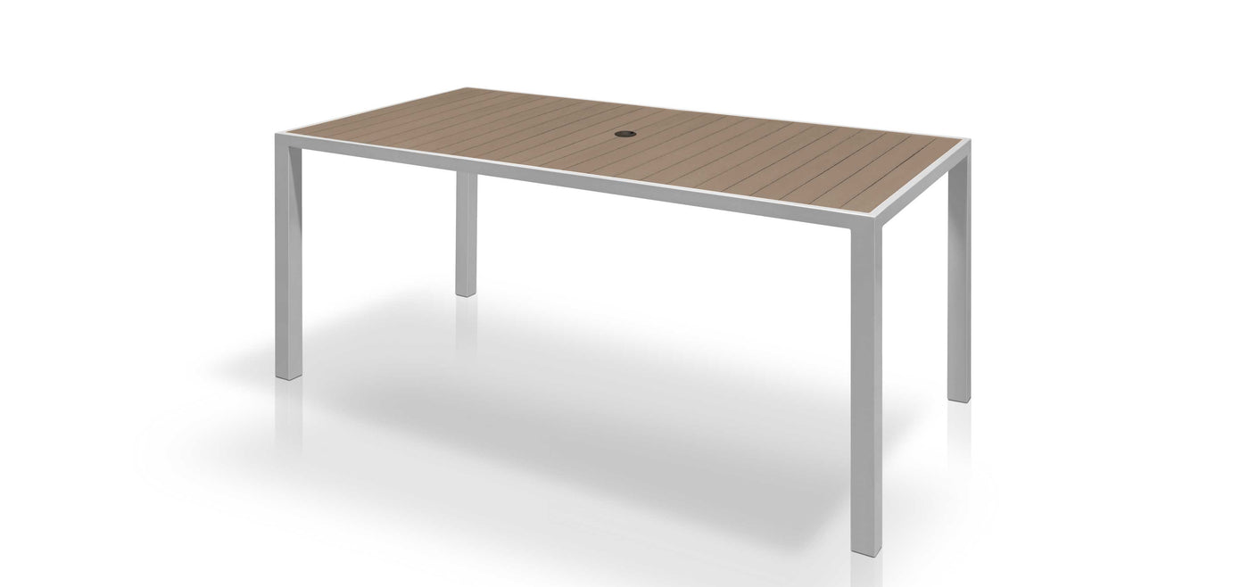 The Tiki system offers recycled plastic lumber furnishings with aluminum frames.