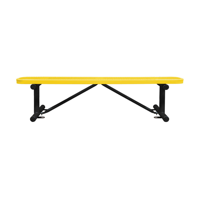 Our backless perforated bench comes in a surface mount style that anchors down with mounting tabs for a secure placement in a stadium. It's available in sizes from 4 to 15 feet in length.