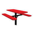 Single post style suspends the entire perforated picnic table and seats on a single 4˝ square post.